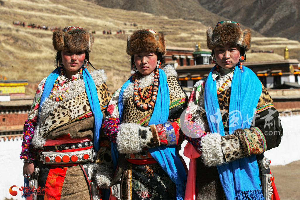 碌曲身着民族服饰的年轻藏民