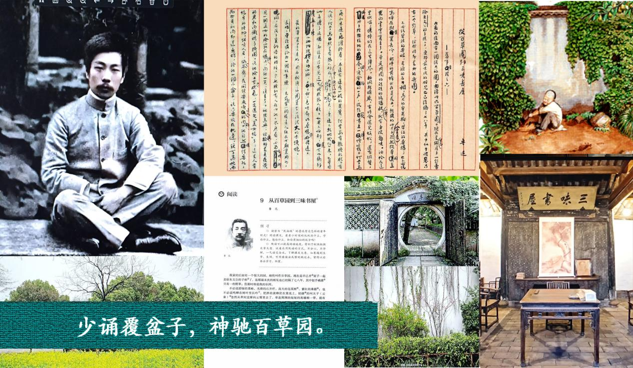 5、琅琅新卷帙:琅琅:读书声。卷帙[juàn zhì]:书籍或书籍的篇章。此处指连续多年入选统编语文教材的鲁迅名作《从百草园到三味书屋》。笔者六十二年前读初一下学期时就曾按老师要求背诵过此篇中描写百草园的段落。而目前最新人教版七年级语文课本(上册)的第九课《从百草园到三味书屋》,教材仍规定“朗读并背诵第二段描写百草园的文字”。