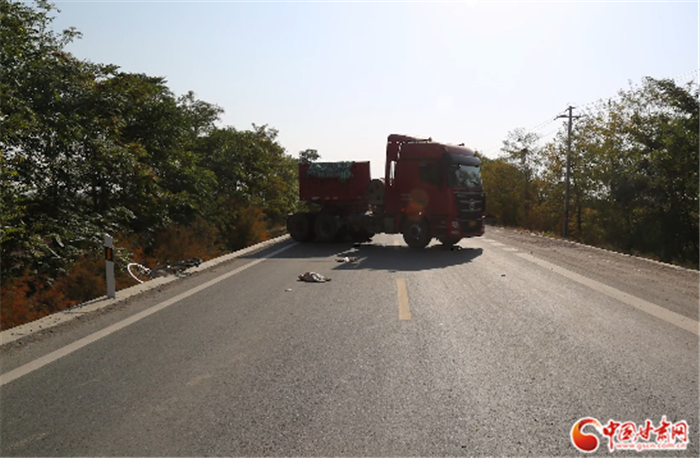 2020年10月10日09时30分许,周某驾驶甘D710**号重型半挂牵引车,沿海天路G338线由东向西超速行驶(事发时的行驶速度为75km/h)至1798KM+950M处时,与前方同向在道路南侧路边逆向行驶突然由南向北横穿公路的姬某骑行的自行车发生碰撞,造成姬某受伤,后经抢救无效死亡的交通事故。