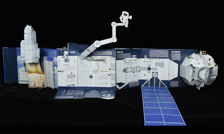 图为《繁星作伴好还乡:空间站全景立体书》展开侧面图