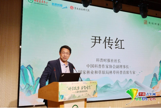科普时报社社长、中国科普作家协会副理事长、国家林业和草原局林草科普首席专家尹传红发表题为“激发想象力和探求欲的科普阅读”的主题演讲。尹传红认为科普阅读可以与孩子的智力发育同步进行,科学可能是最能彰显问题、发现问题、解决问题的重要领域,科普阅读能帮助孩子增长知识、增加智慧、增进思想。
